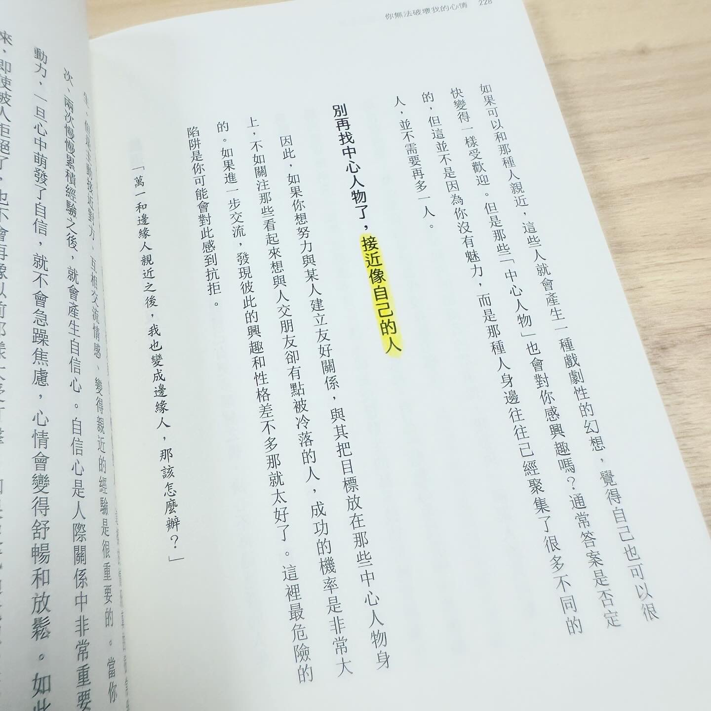當我們在不知不覺中,把別人的情緒當作自己的責任,那不就天天都累翻天,在書裡面記錄很多生活案例,有些是作者擔任精神科醫師時接觸到的故事,總是能在其中翻到一、兩篇讓自己頻頻點頭的畫面,那些是我們的投射,是讓我們開始「感受」情緒、「感覺」情緒的引導,能夠透過他人的故事,找到某部分未曾發現的自己,是一件幸運的事情。
